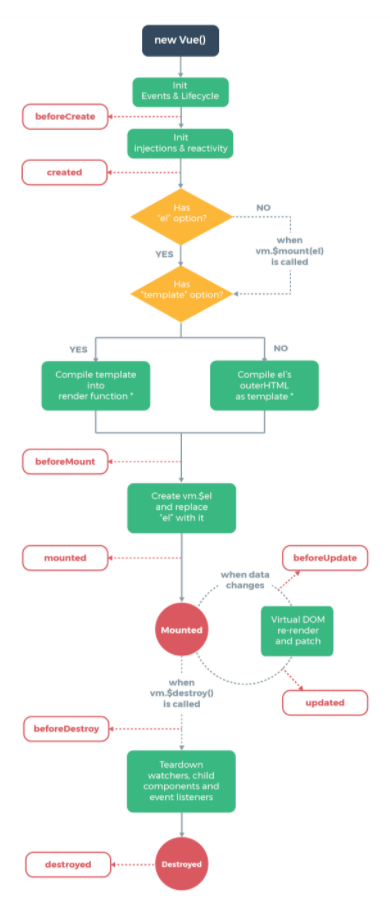 - 지정된 el에 Vue Instance가 마운트 된 후 호출