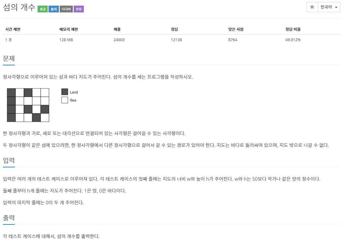 문제 출처 www.acmicpc.net/problem/4963
