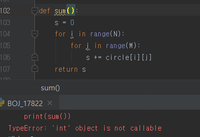 sum은 예약어→변수명 또는 함수명으로 사용할 수 없다.